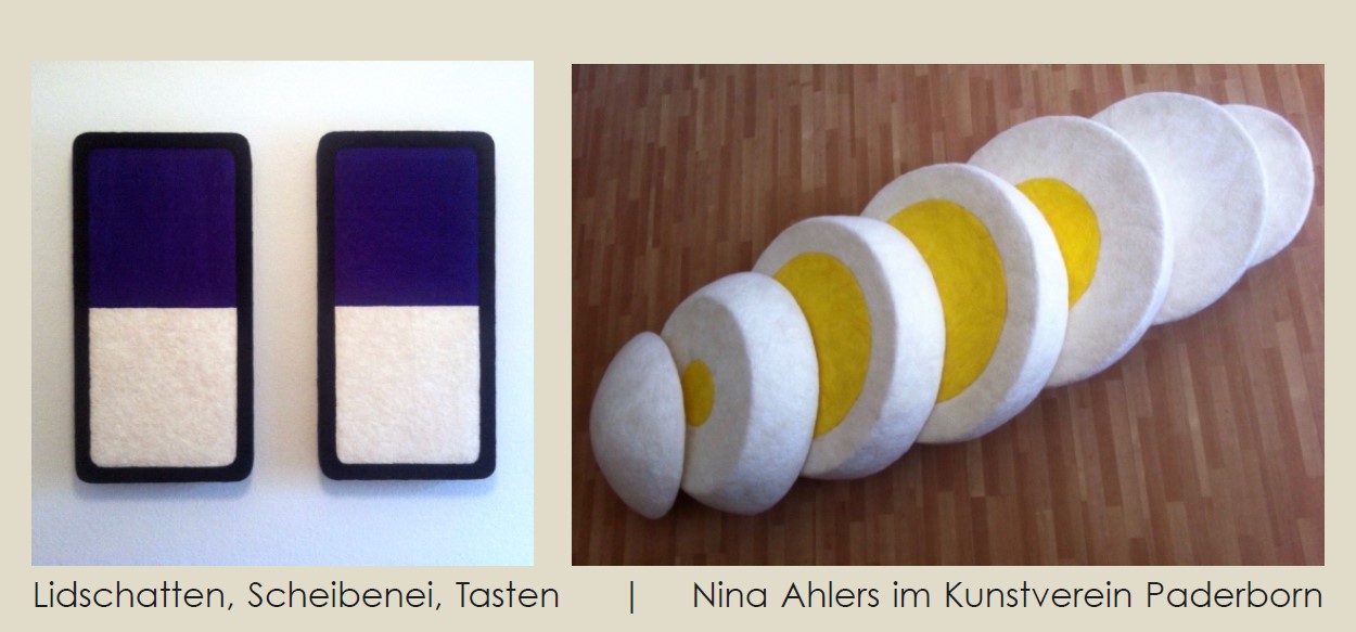 Nina Ahlers widmet sich seit Jahren dem Verfahren des Filzens, einer traditionellen Technik, die eigentlich sehr weiche und anschmiegsame Objekte erwarten lässt. Zu ihrem künstlerischen Ansatz gehört es, diese Erwartung zu unterlaufen. Die Arbeiten haben eine weiche Oberfläche und dennoch sind die Formen überraschend präzise, was nur durch einen festen Kern erreichbar wird. Doch nicht nur die besondere Haptik ist entscheidend für die Wahl des Materials, sondern ebenso die spezielle Farbintensität, die sich nur mit gefärbter Wolle erreichen lässt. Der Blick kann tief in die Farbe eintauchen und sie losgelöst von der Form betrachten. Momente von Skulptur und Malerei treten in einen engen Dialog und zeichnen die unverwechselbare Bildsprache von Nina Ahlers aus.